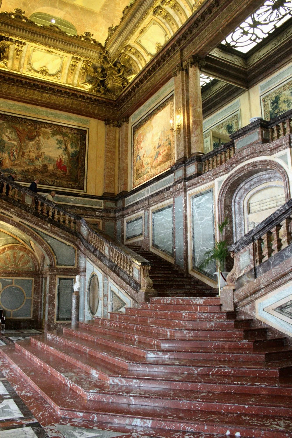Illustration : La reconstruction en 1906-1910 de l'aile droite du Palais d'Egmont se fit dans le même style classique que l'aile gauche édifiée par Tilman-François Suys, lui conférant sa physionomie actuelle. C'est à cette époque que l'on intègra au palais le grand escalier d'honneur qui s'inspire de l'escalier des Ambassadeurs du Château de Versailles qui, lui, a disparu. Cette somptueuse copie, tout en marbre, accueille les personnalités lors de certaines grandes rencontres politiques internationales qui se tiennent à Bruxelles. (Wikipédia)