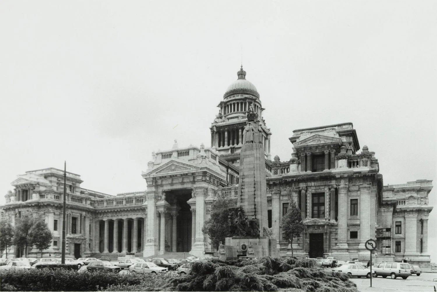 illustration : Gigantesque édifice de style éclectique dessiné par l’architecte J. Poelaert en 1862 et construit de 1866 à 1883. Situé sur un plateau surélevé, il domine de sa silhouette la place du même nom, toute la partie sud de la ville et ferme la perspective de la rue de la Régence. (Inventaire du Patrimoine Architectural)